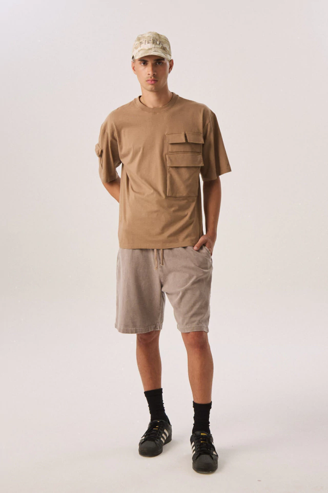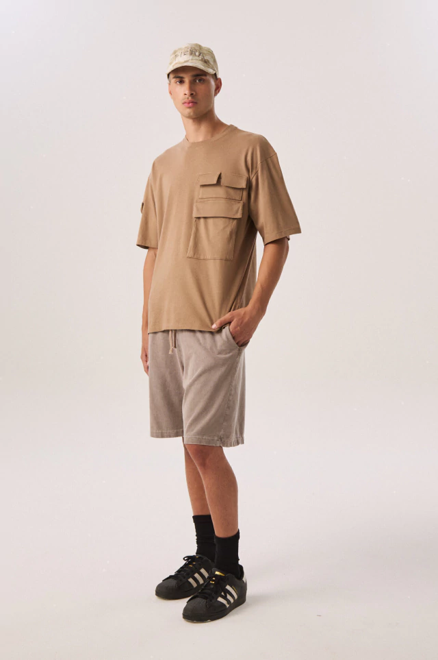 Bermuda de jersey pesado con lavado efecto acido arena. Tiro medio, largo por encima de rodillas. Silueta relajada. Cintura con cordon para regular.Composiciòn: 100 algodòn.Cuidados: Lavar a mano, con agua fria, secar a la sombra, no retorcer.. Calce sin genero.