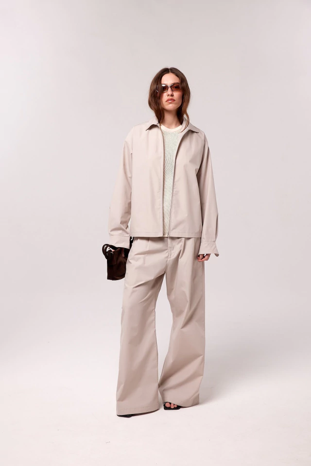 Camisa de poplin color arena. Cierre en delantero y botones en puños. Largo debajo de cintura y silueta amplia. Bordado en espalda. Arma tu total look con el Pantalón Cipre. Composicion: 100% algodón. Cuidados: Lavar a mano con agua fria. No Centrifugar. No usar blanqueador. Planchar maximo 110ºC. Las medidas de la modelo son: Busto 82cm, Cintura 60cm, Cadera 90cm, Altura 1.75mt. Está usando talle S. Las medidas del modelo son: Busto 80cm, Cintura 74cm, Cadera 93cm, Altura 1.83mt. Está usando talle L.