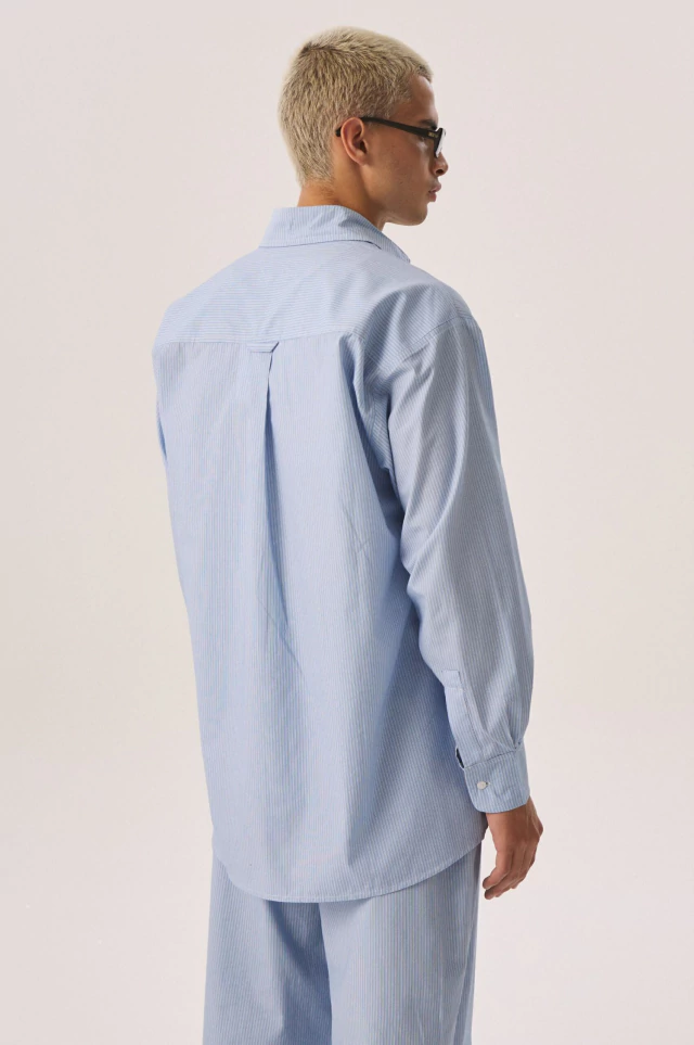 Camisa de poplin a rayas. Largo debajo de segunda cadera y silueta amplia. Botones en delantero y puños. Bordado en delantero izquierdo.Composicion: 100 algodon. Cuidados: Lavar a mano, con agua fria, secar a la sombra, no retorcer. Calce sin genero.