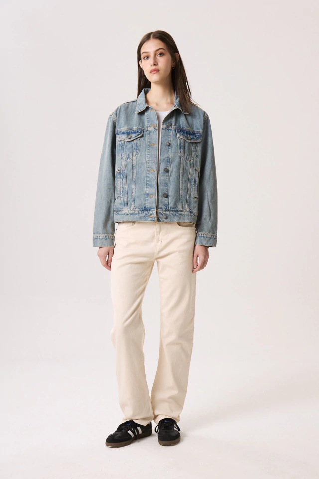 Tiro bajo, color crudo y lavado sutil. Largo a los tobillos, pata recta. Cierre frontal y avíos metálicos. Lavado eco-wash con menor impacto ambiental: menos consumo de agua y energía.Composicion: 98 Algodon 2 Elastano. Cuidados: Lavar en lavarropas, no usar blanqueador, centrifugado corto.